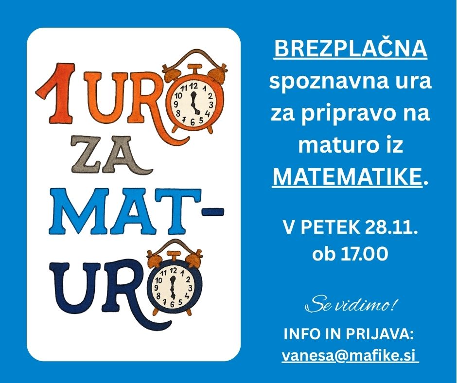 Pomagamo pri reševanju posameznih problematičnih nalog. Naloge mi lahko pošljete na vanesa@mafike.si, nazaj vam jih vrnemo s podrobno razlago.